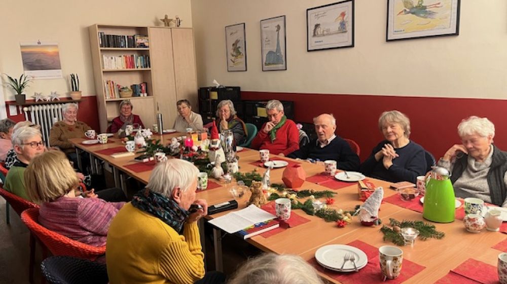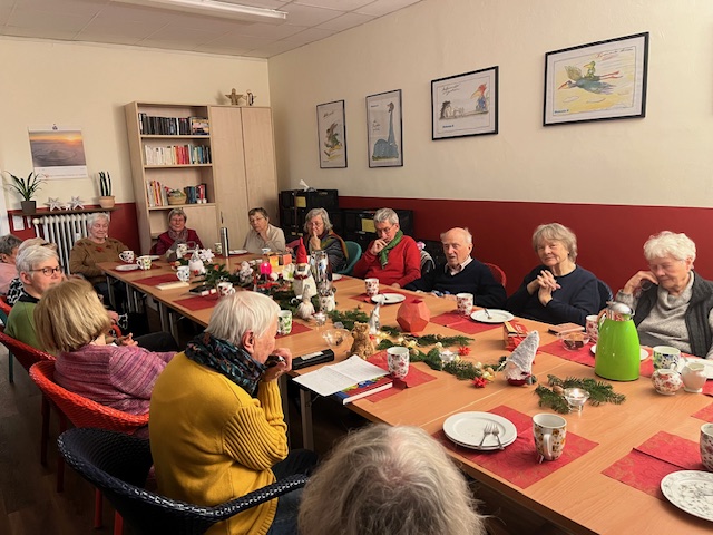 Jeden Mittwoch treffen sich Menschen aus der Umgebung von 14 bis 16 Uhr bei uns zum Kaffee-Klönschnack. Bevor aber Kaffee, Tee und der selbstgebackene Kuchen genossen werden kann, bringt Edgar den Kreislauf mit 20 Minuten Sitzsport etwas in Schwung. Dann wird geklönt, mal werden Geschichten und Gedichte vorgelesen, mal das Gedächtnis trainiert. Ab und zu kommen besondere Gäste zu uns, u.a. die Bünabes (Bürgernahe Beamte). Sie informieren über Neues im Stadtteil und über den aktuellsten Enkeltrick. Zudem organisieren wir Filmnachmittage und Vorträge zu verschiedensten Themen , z.B. Demenz.
